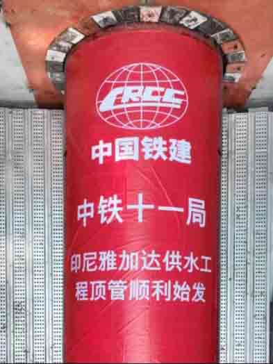 印尼雅加達供水工程項目首臺1.8米直徑頂管機領跑全線. 標志著公司發揮地下工程建設優勢實施“海外優先”戰略的步伐再次邁出堅實一步